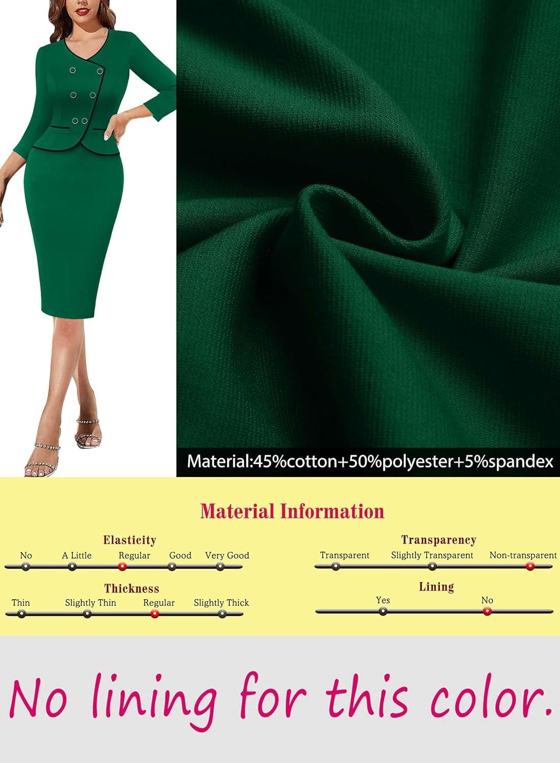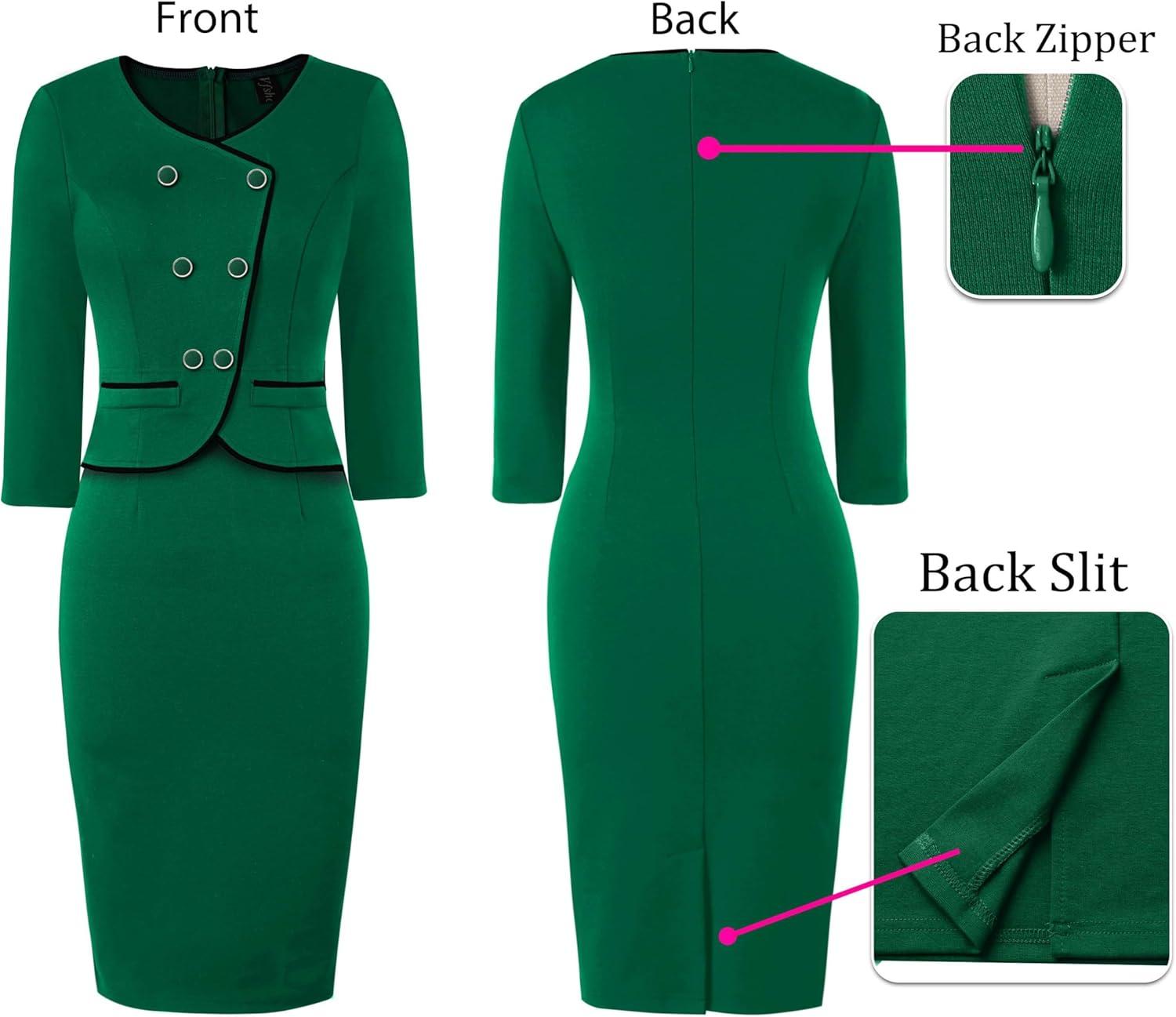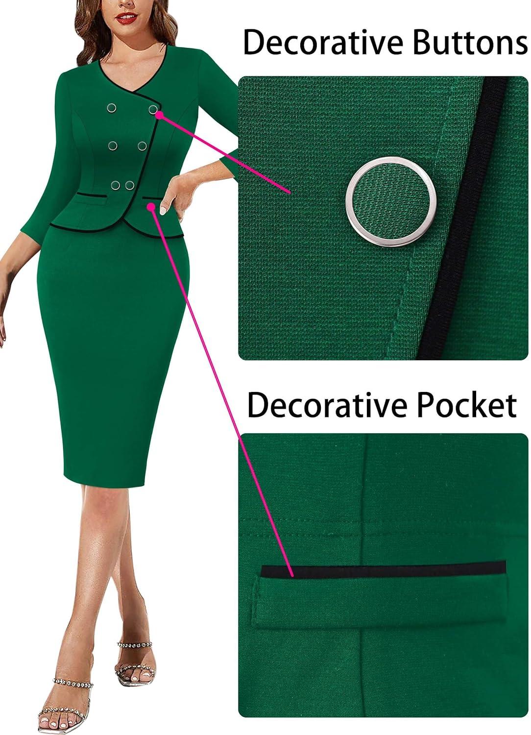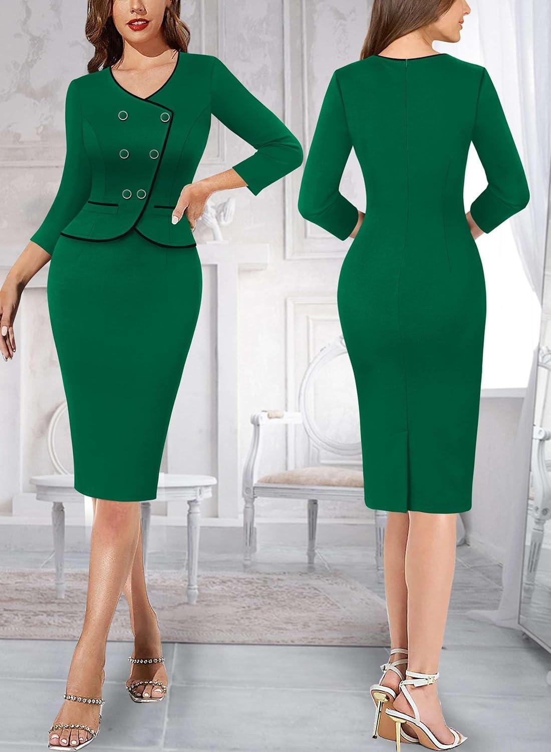 Be the first to review “VFSHOW Womens 2024 Fall Work Business Dresses Double Breasted V Neck Office Slimming Peplum Pencil Sheath Dress(Green With Black Piping)”