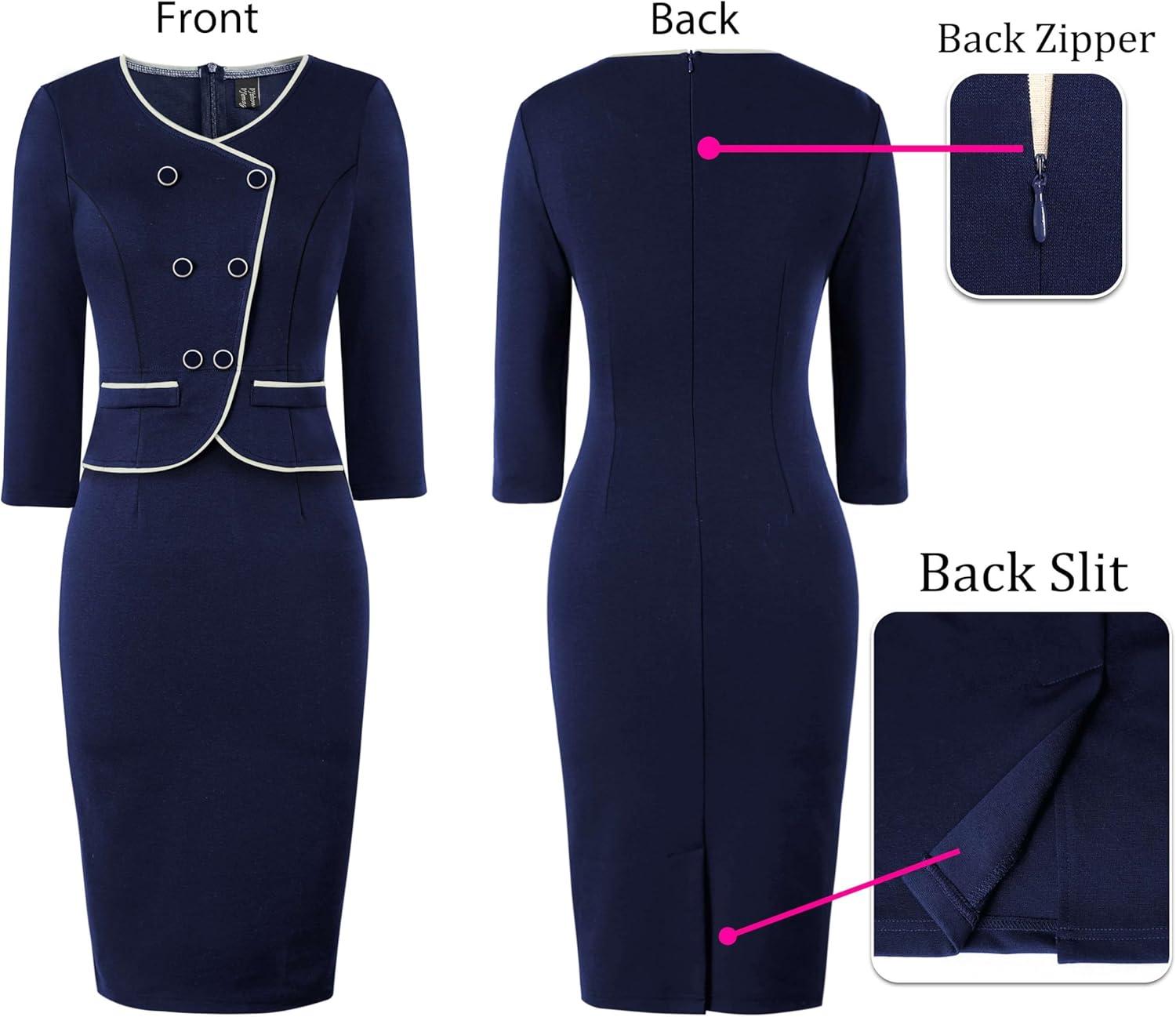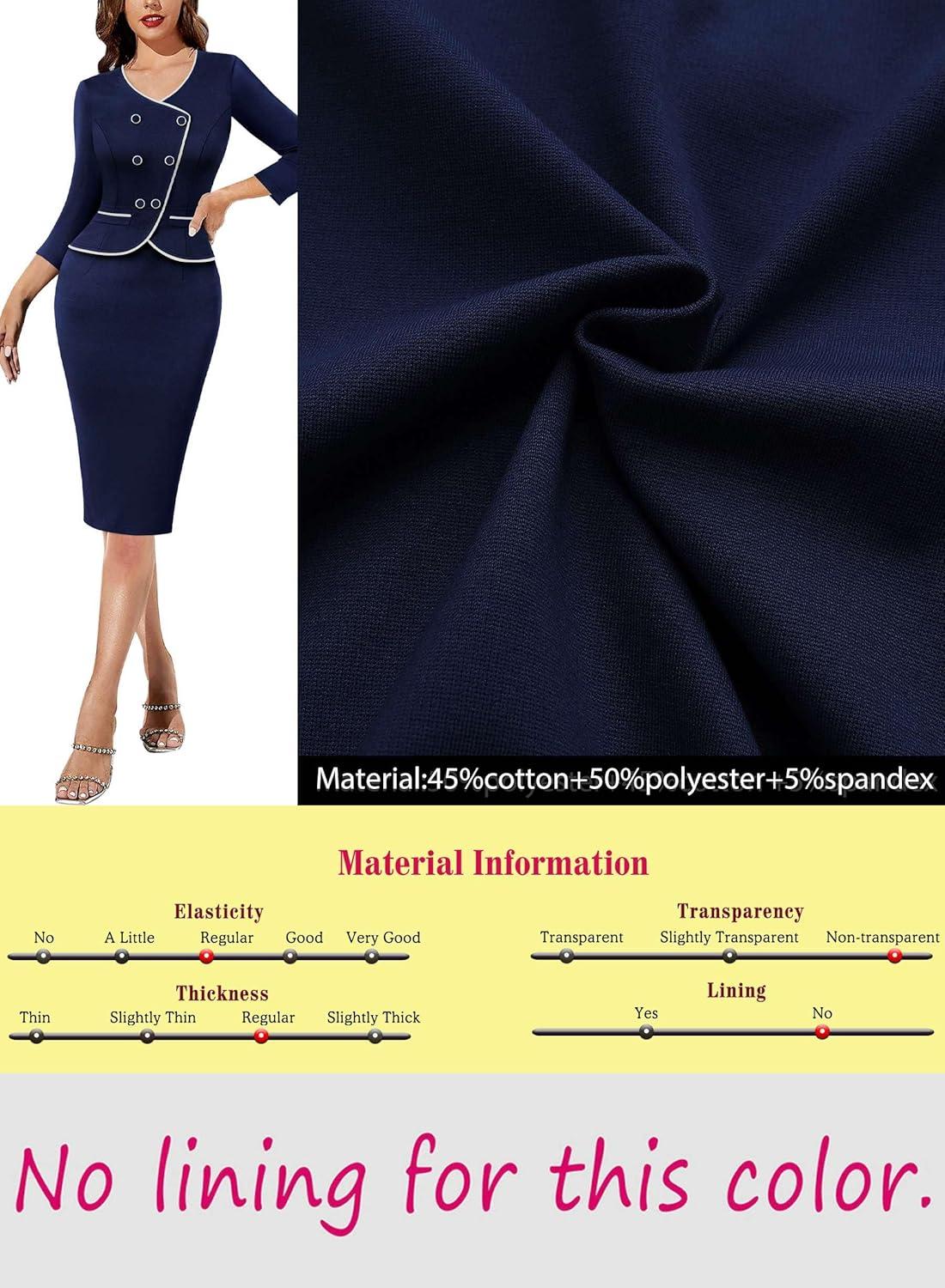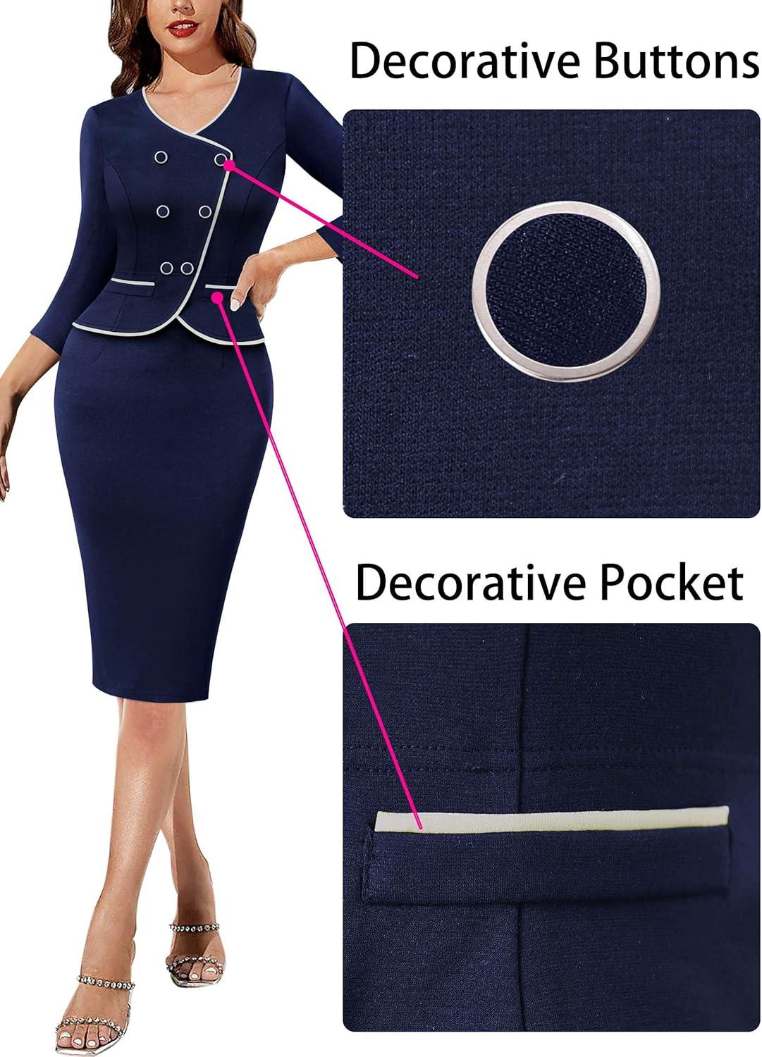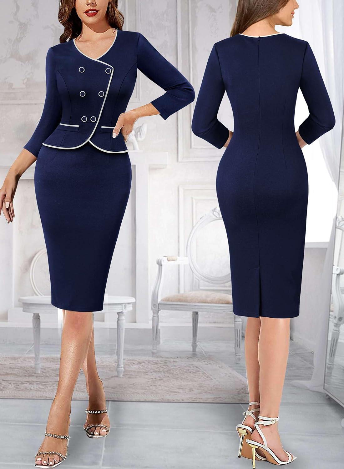 Be the first to review “VFSHOW Womens 2024 Fall Work Business Dresses Double Breasted V Neck Office Slimming Peplum Pencil Sheath Dress(Navy Blue+ivory Piping)”