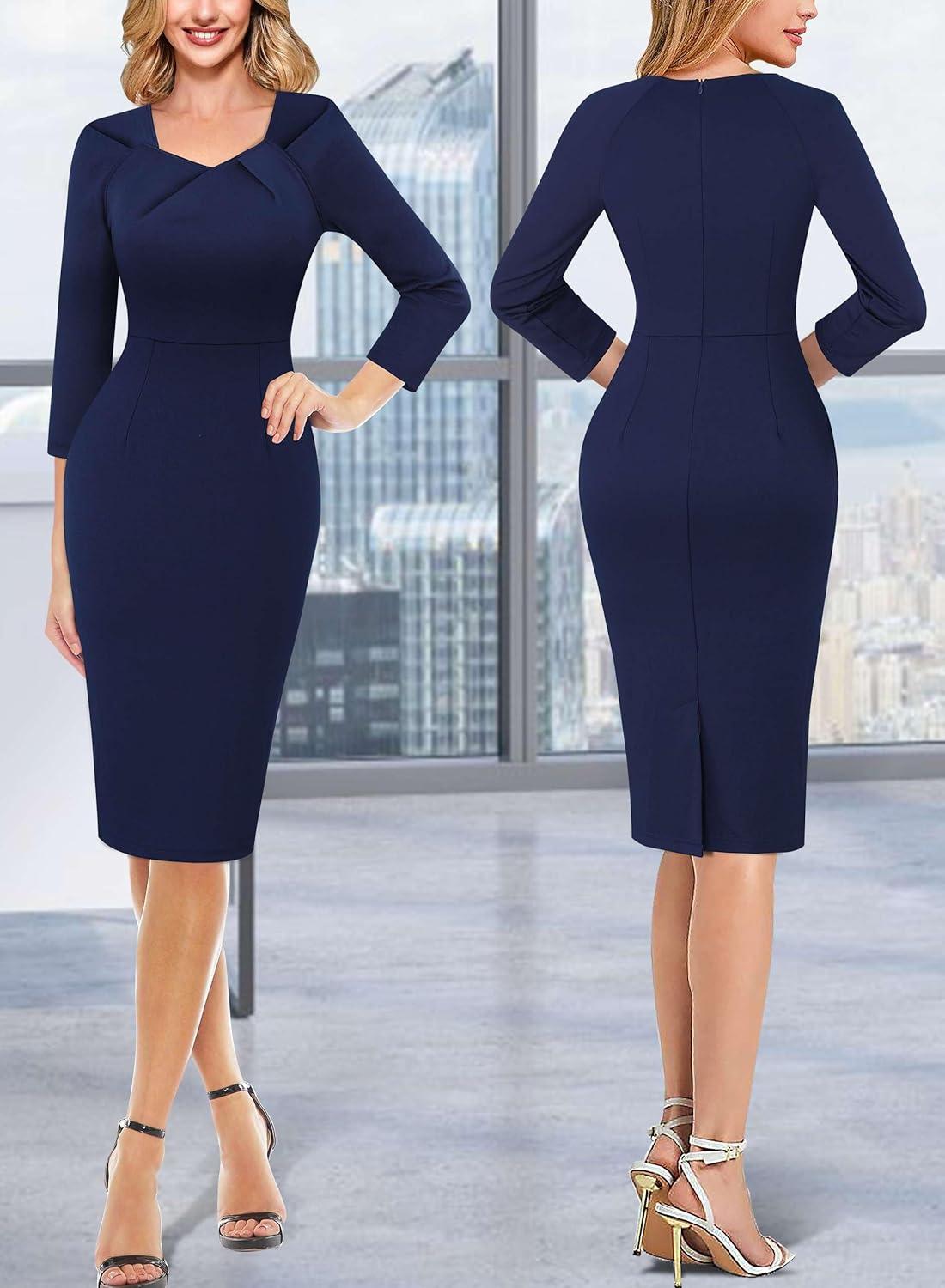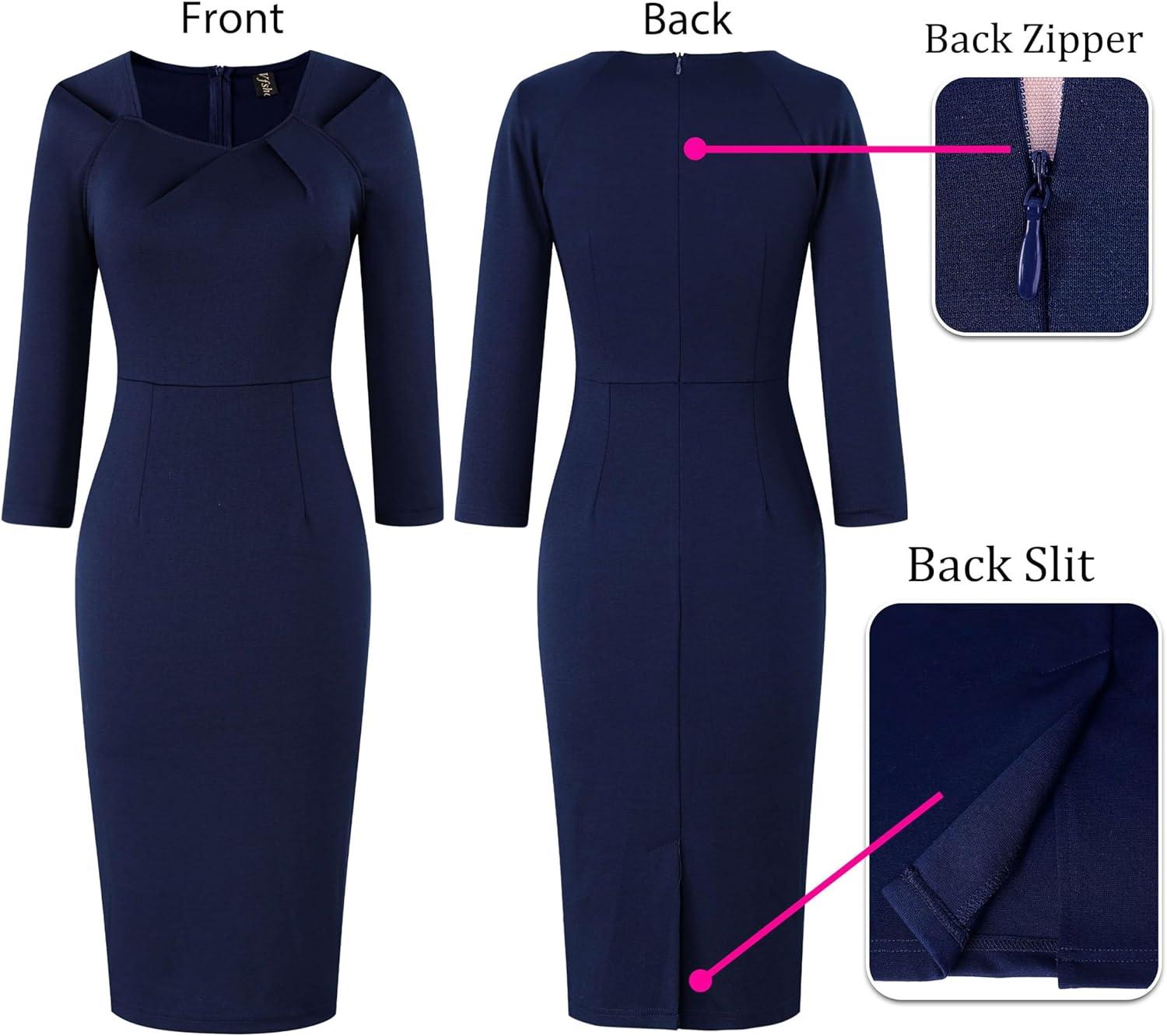 Our clearance section features the best deals on VFSHOW Womens 2025 Work Business Office Dresses Pleated Asymmetric Neck Vintage Church Slimming Pencil Sheath Dress(Navy Blue) and accessories. Check it out now!
