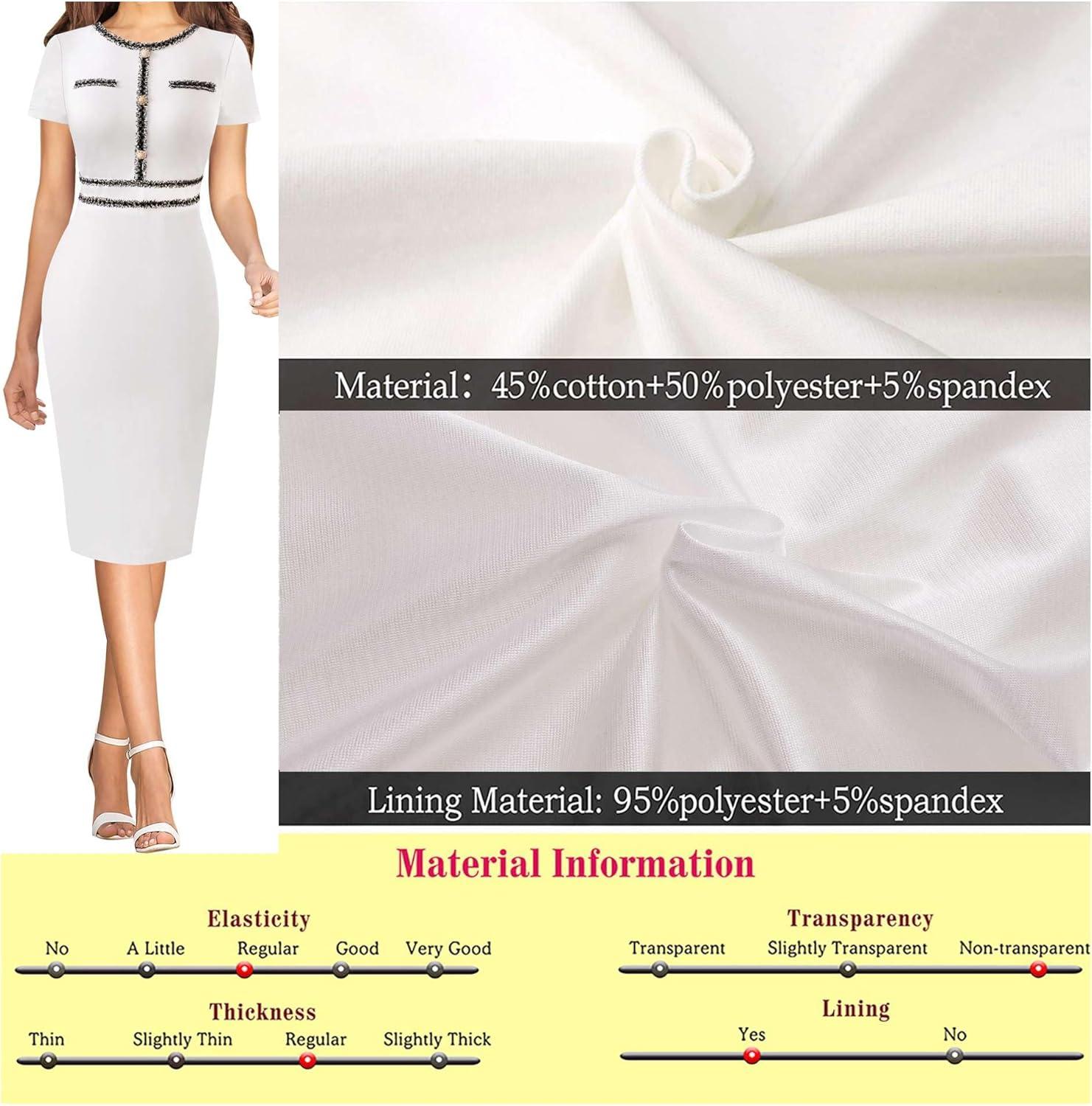 VFSHOW Womens Crew Neck Button Business Work Office Bodycon Dress Short Sleeve Patchwork Tweed Trim Party Pencil Sheath Dress(Off-white With Black Tweed Trim)