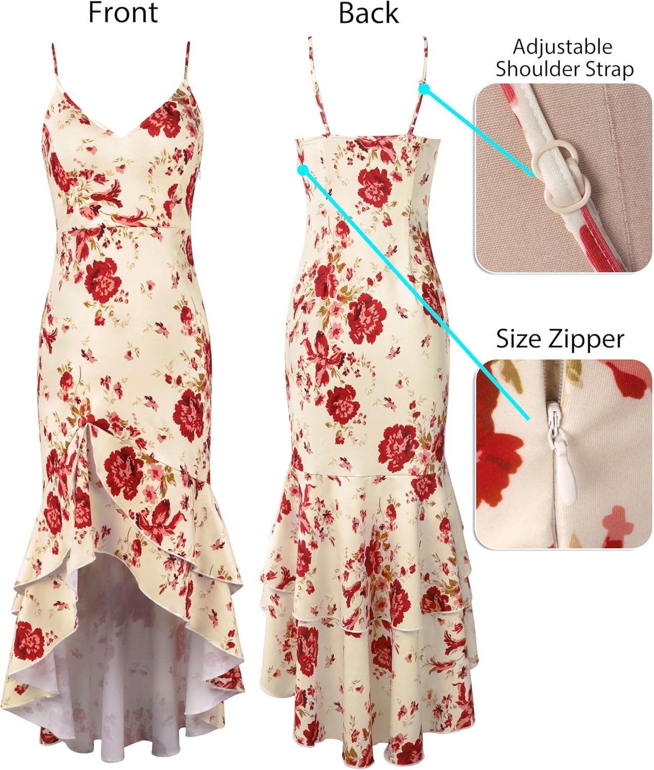 Be the first to review “VFSHOW Womens Formal Double Layer Ruffle High Low Maxi Dress 2025 Sexy Backless V Neck Spaghetti Strap Wedding Guest Dresses(Beige With Red Floral Print)”