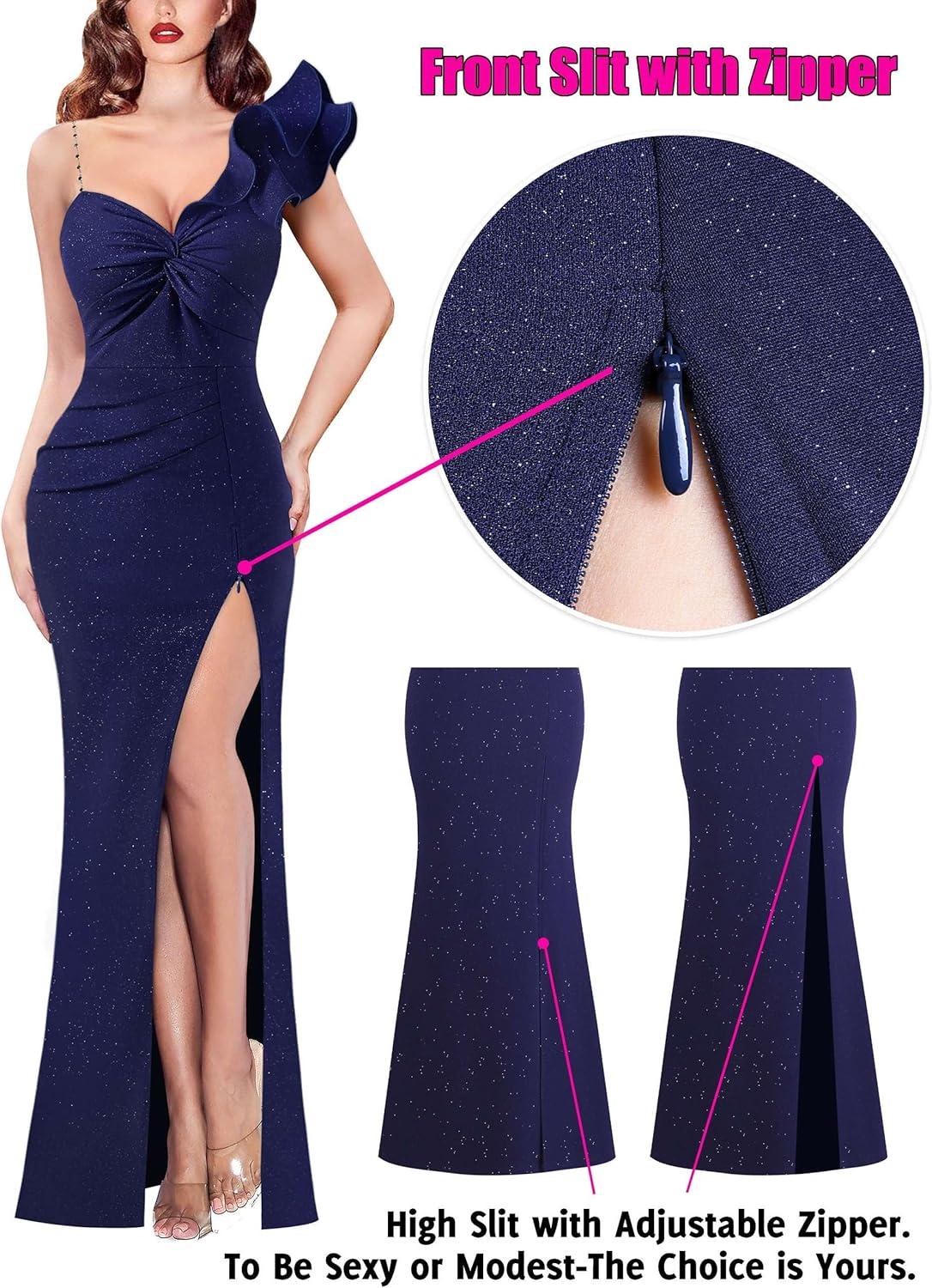 Save big on VFSHOW Womens Formal Prom Ruffle One Shoulder Strap Ruched Maxi Dress 2025 Sexy Twist Front Split Wedding Guest Evening Gown(Sparkly Navy Blue) and accessories during our BOGO sale. Buy one, get one 50% off!