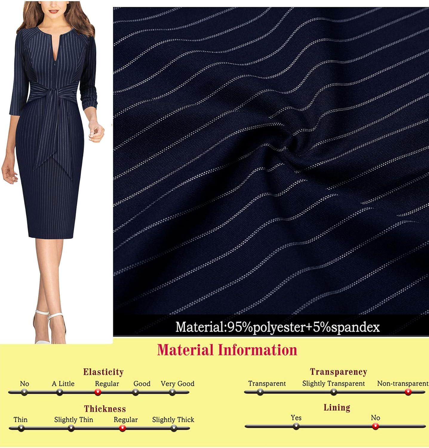 VFSHOW Womens Front Zipper Tie Waist Bow 3/4 Sleeve Slim Fitted Work Business Office Party Bodycon Pencil Sheath Dress(Dark Blue White Striped)