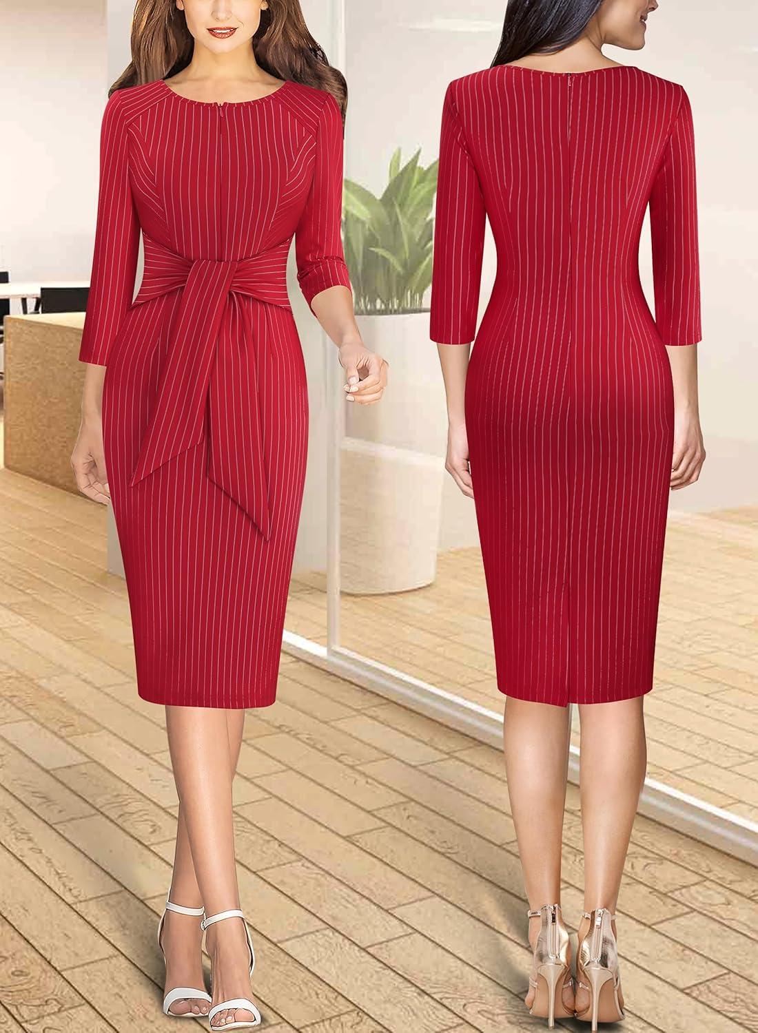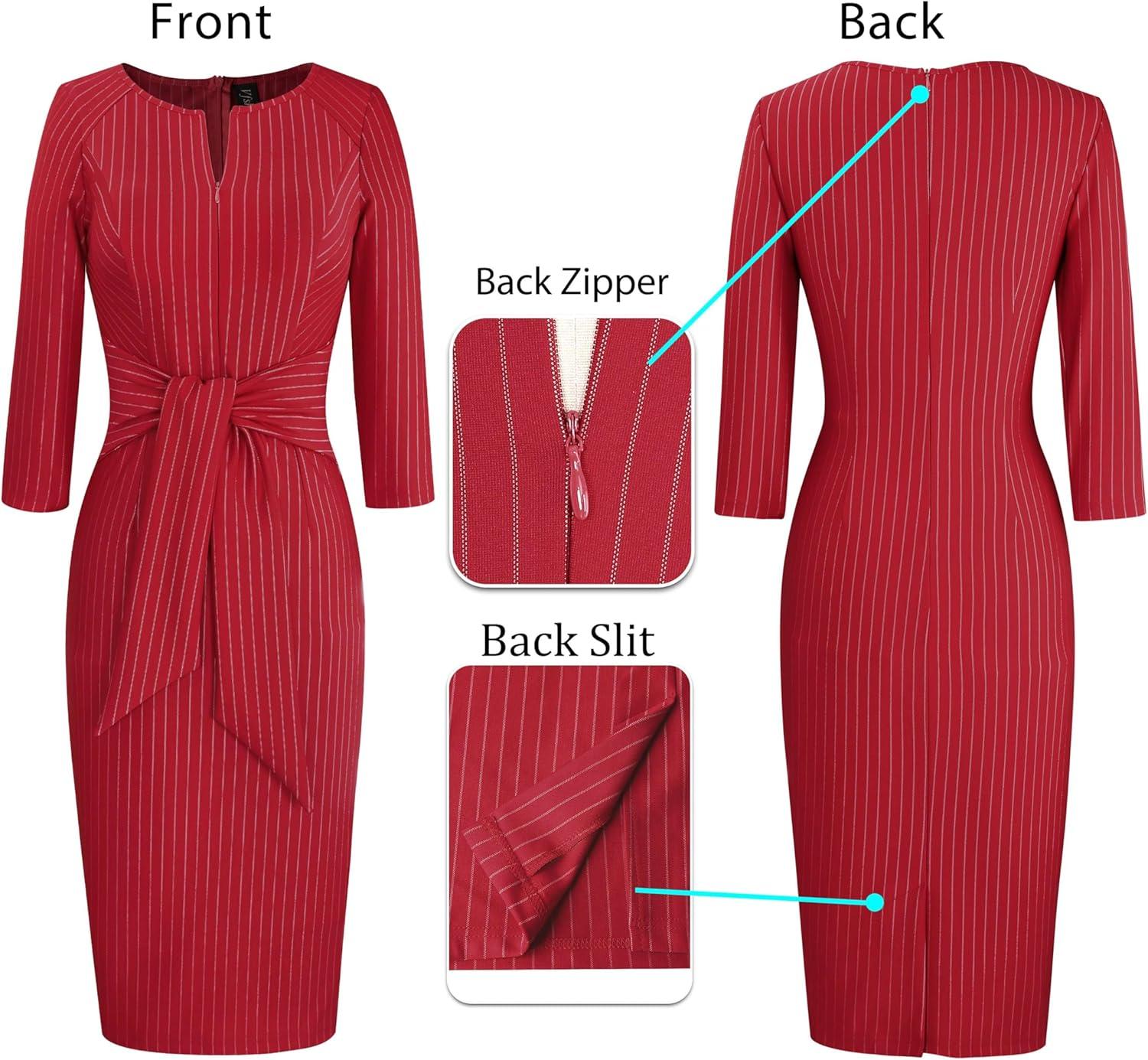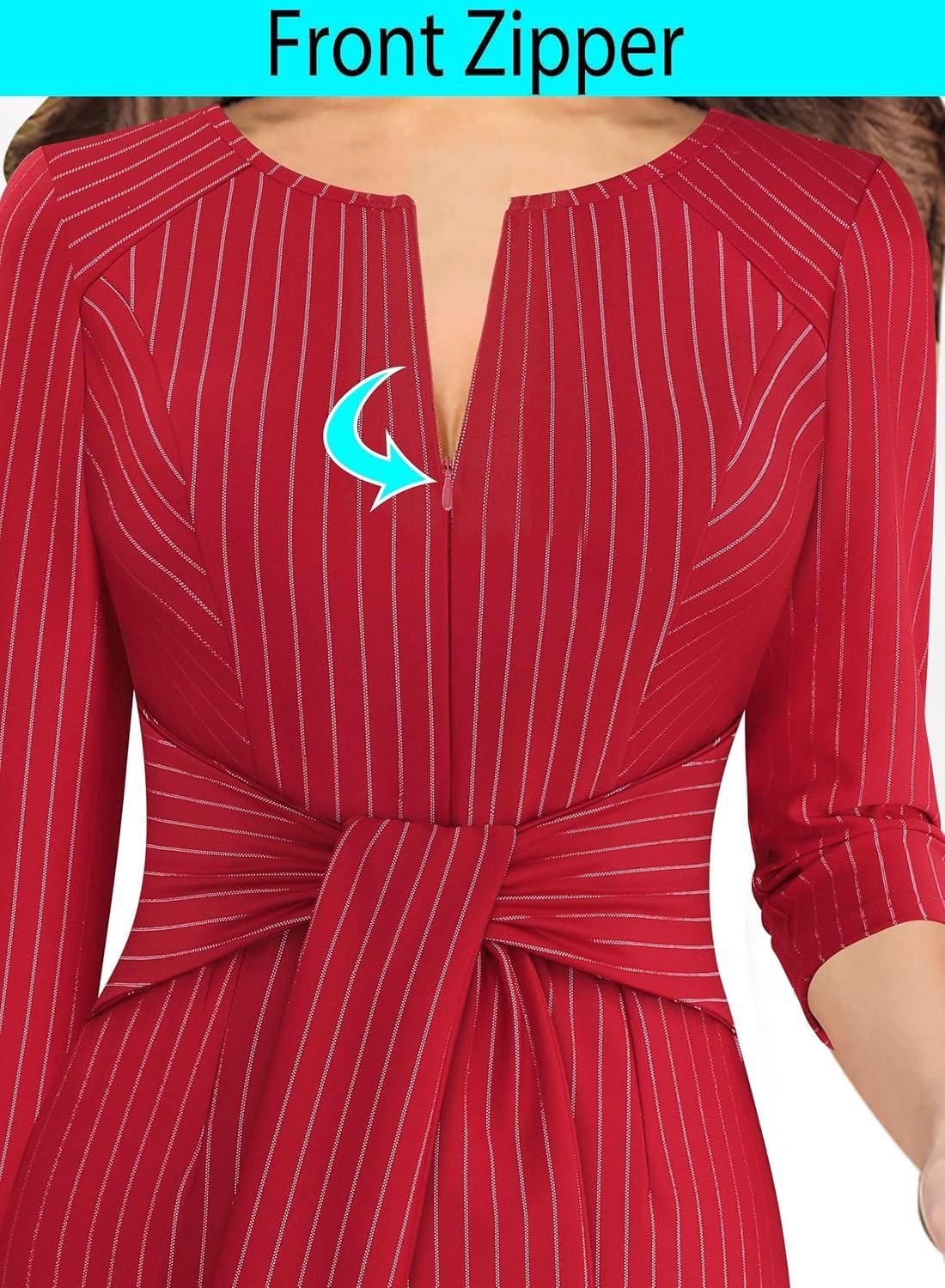 Be the first to review “VFSHOW Womens Front Zipper Tie Waist Bow 3/4 Sleeve Slim Fitted Work Business Office Party Bodycon Pencil Sheath Dress(Red With White Stripes)” Cancel reply