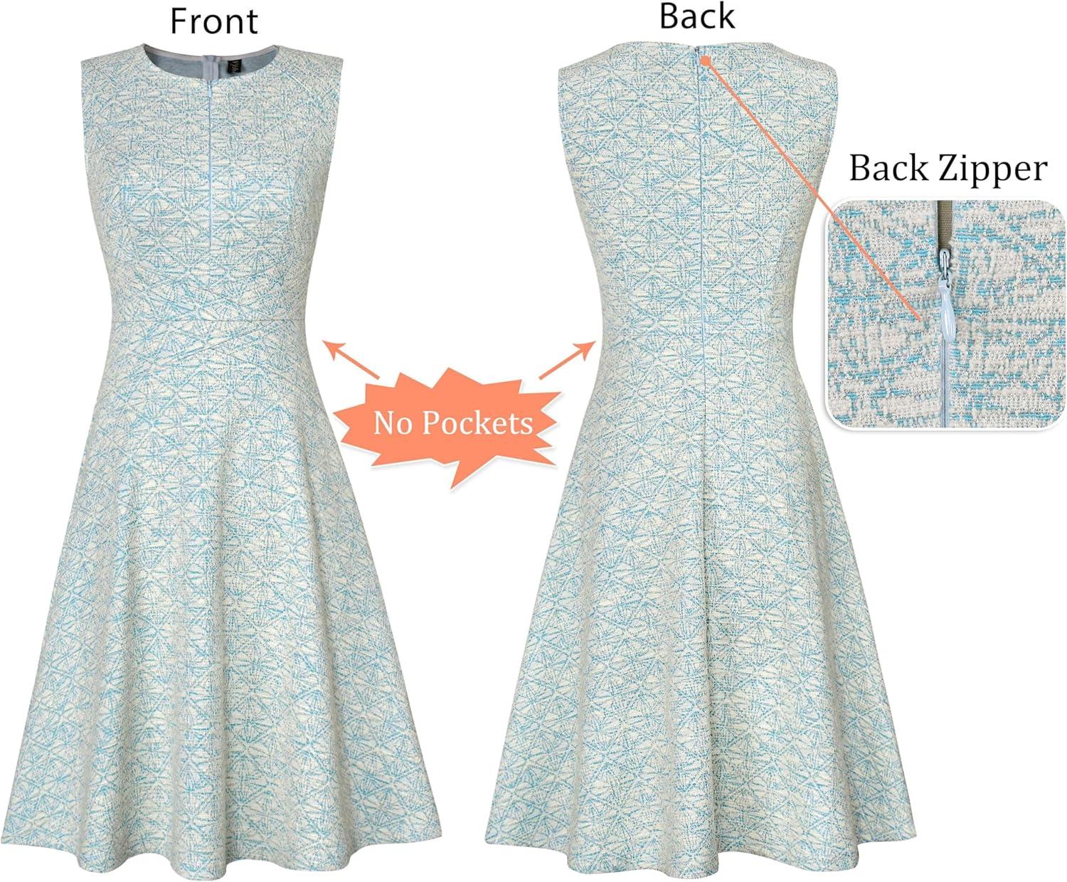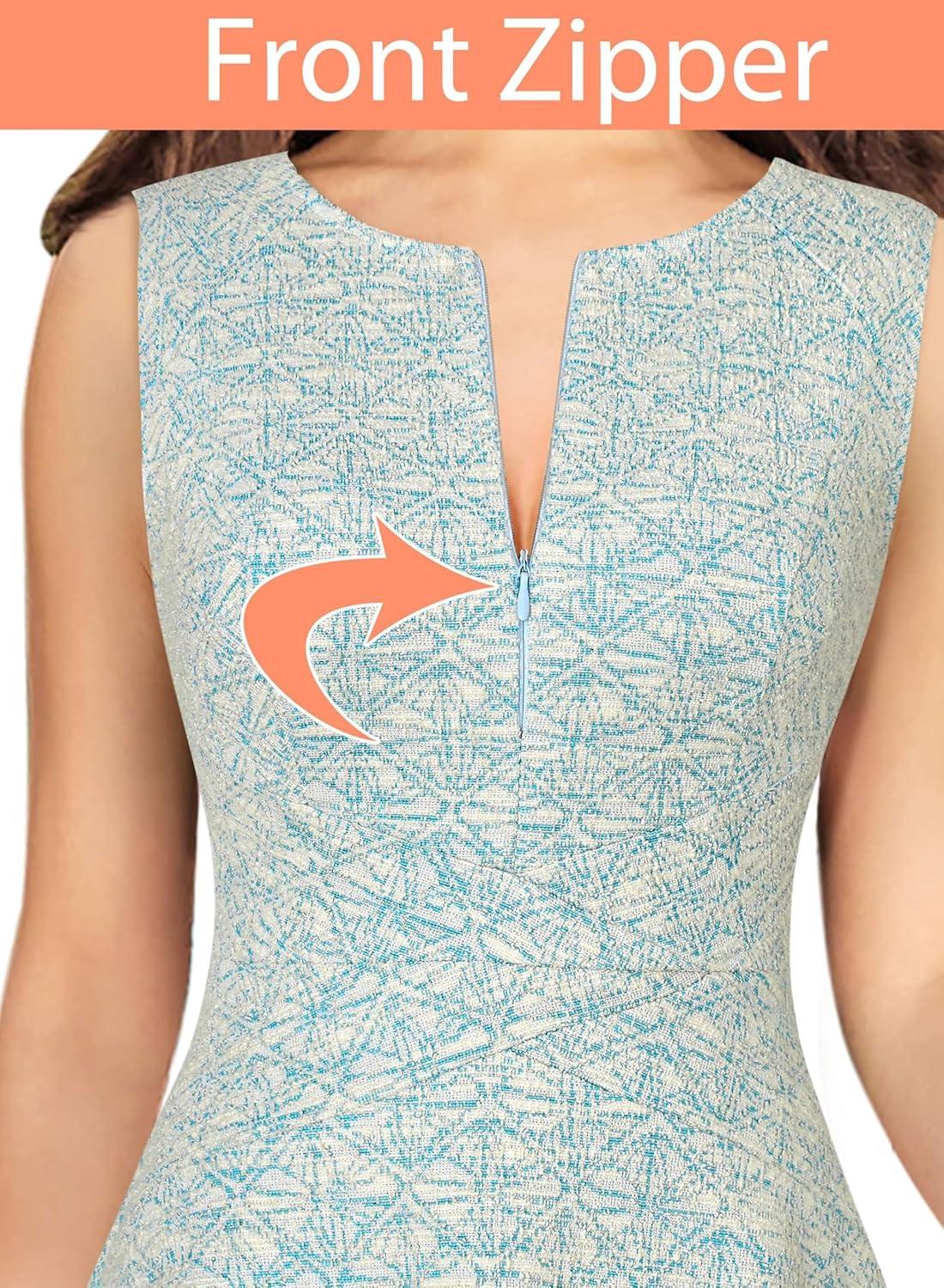 image:imageVFSHOW Womens Front Zipper Work Business ALine Dress Elegant Professional Office Career Church Fit and Flare Skater DressesBlueoff White Tweed