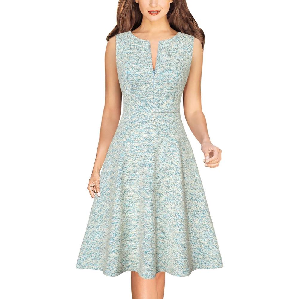 Be the first to review “VFSHOW Womens Front Zipper Work Business A-Line Dress Elegant Professional Office Career Church Fit and Flare Skater Dresses(Blue+off White Tweed)”