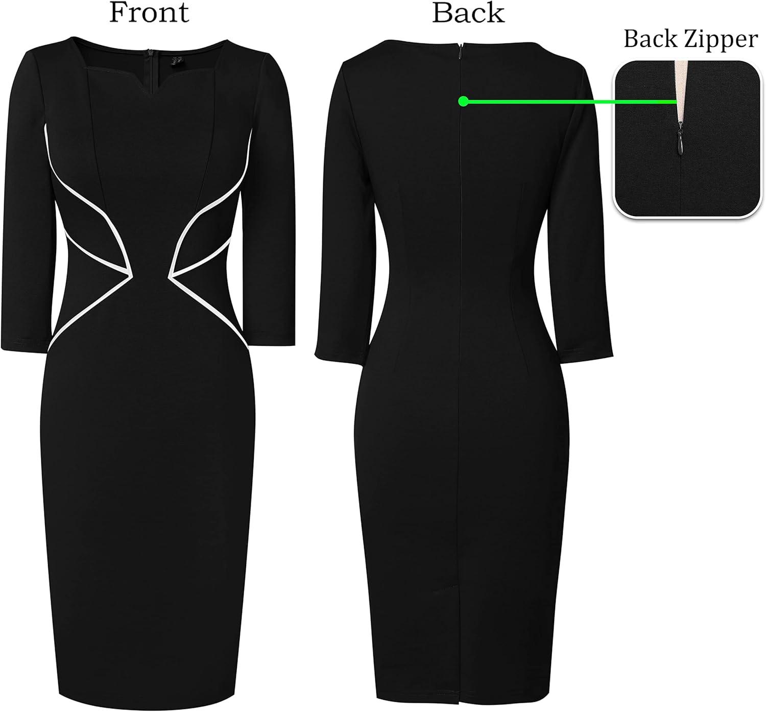 Be the first to review “VFSHOW Womens Notch V Neck Work Office Business Bodycon Pencil Sheath Dress(Black + White Piping)”
