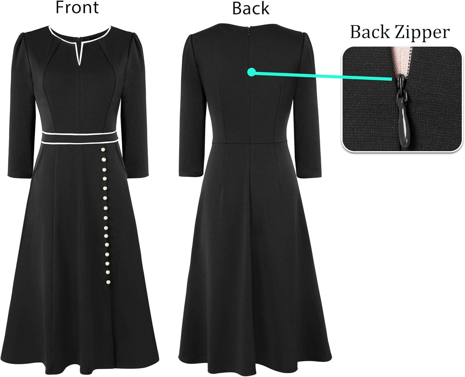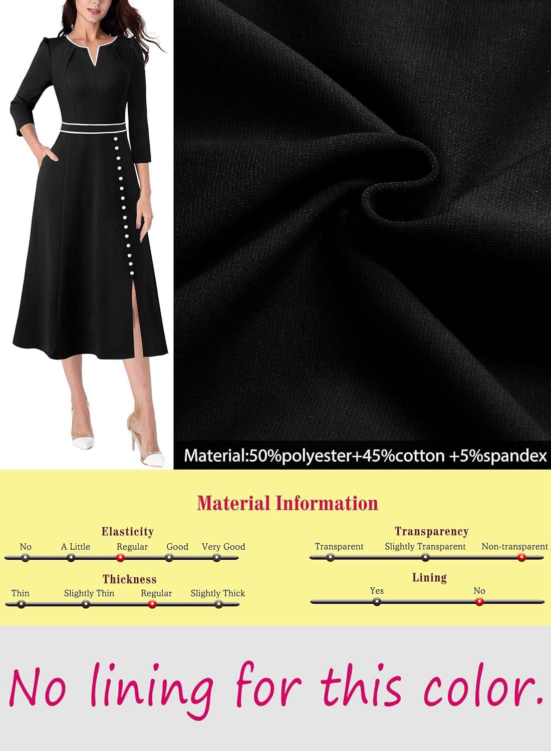 Be the first to review “VFSHOW Womens Pleated Notch V Neck Front Slit Buttons Pockets Office Business Work Slim A-line Fit and Flare Midi Dress(Black With White Piping)”