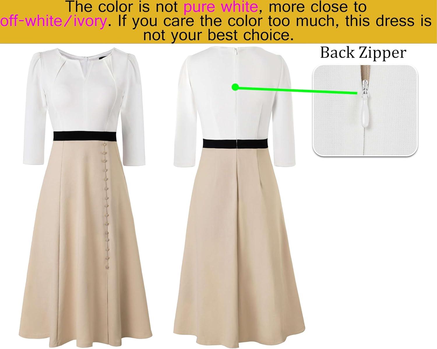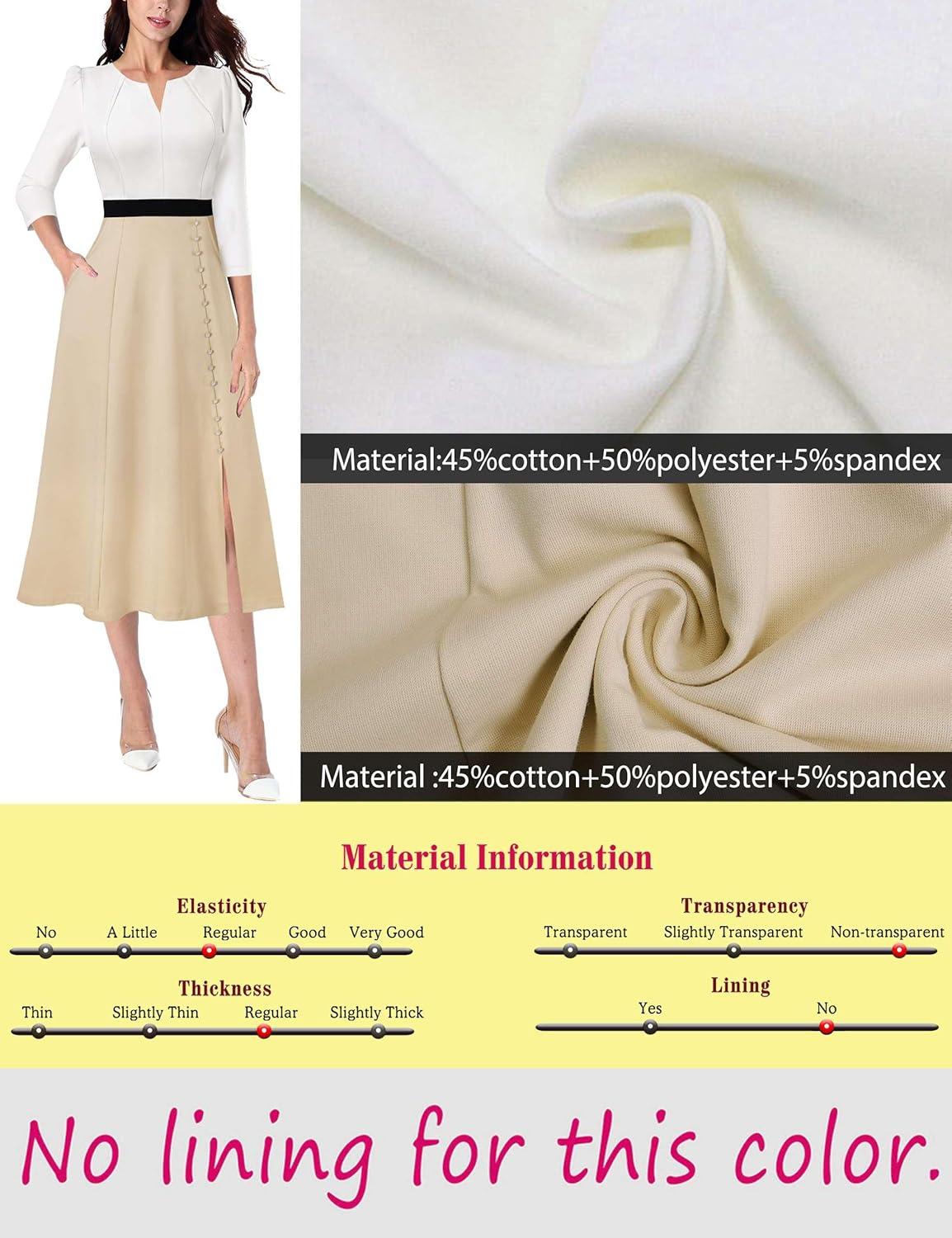 Be the first to review “VFSHOW Womens Pleated Notch V Neck Front Slit Buttons Pockets Office Business Work Slim A-line Fit and Flare Midi Dress(Off-white+black+beige)”