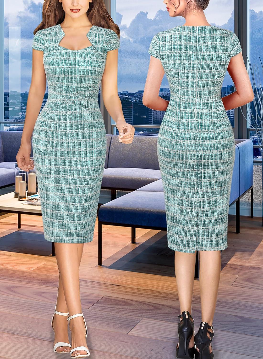 Be the first to review “VFSHOW Womens Square Neck Work Office Business Bodycon Dress 1950s Cap Sleeve Elegant Church Slim Fitted Pencil Sheath Dress(Teal Green Tweed)” Cancel reply