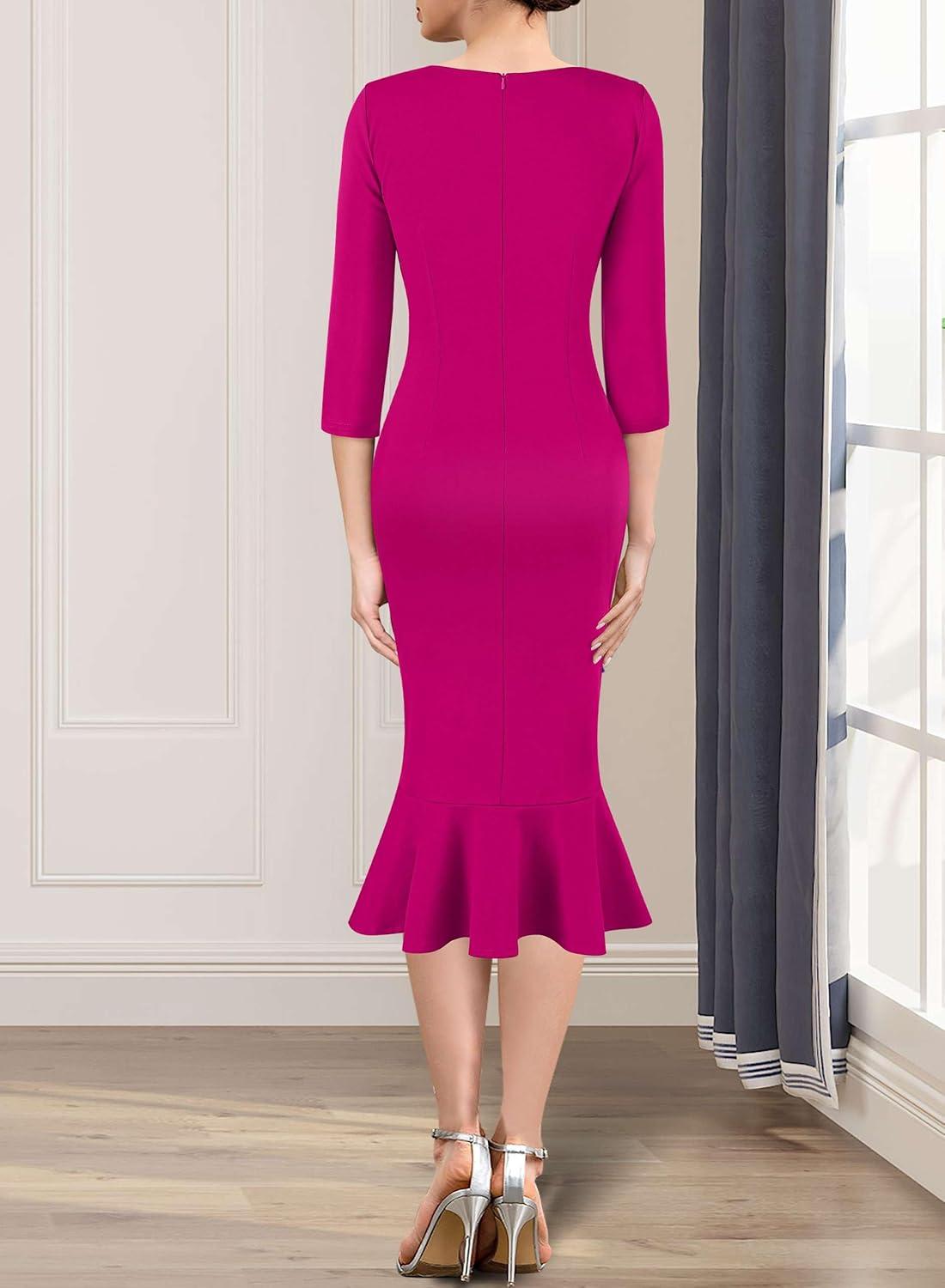VFSHOW Womens Vintage Elegant Cocktail Party Bodycon Pencil Mermaid Midi Mid-Calf Dress(Hot Pink)