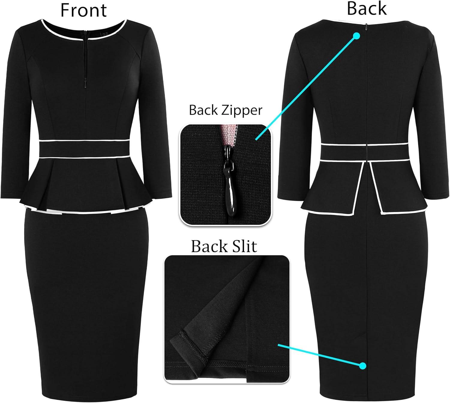 Be the first to review “VFSHOW Womens Wear to Work Front Zipper V Neck Peplum Business Office Church Flattering Pencil Sheath Dress(Black + White Piping)”