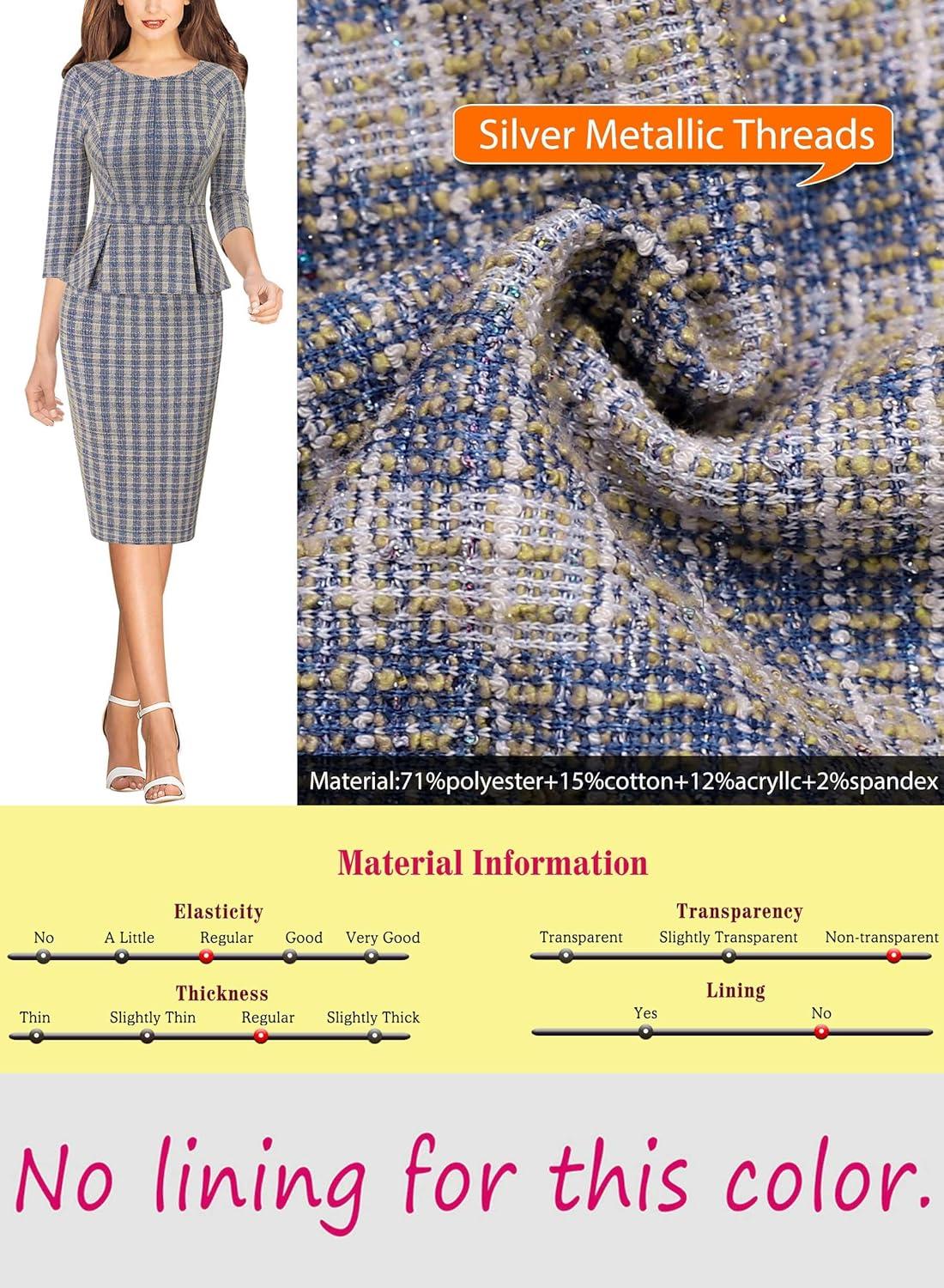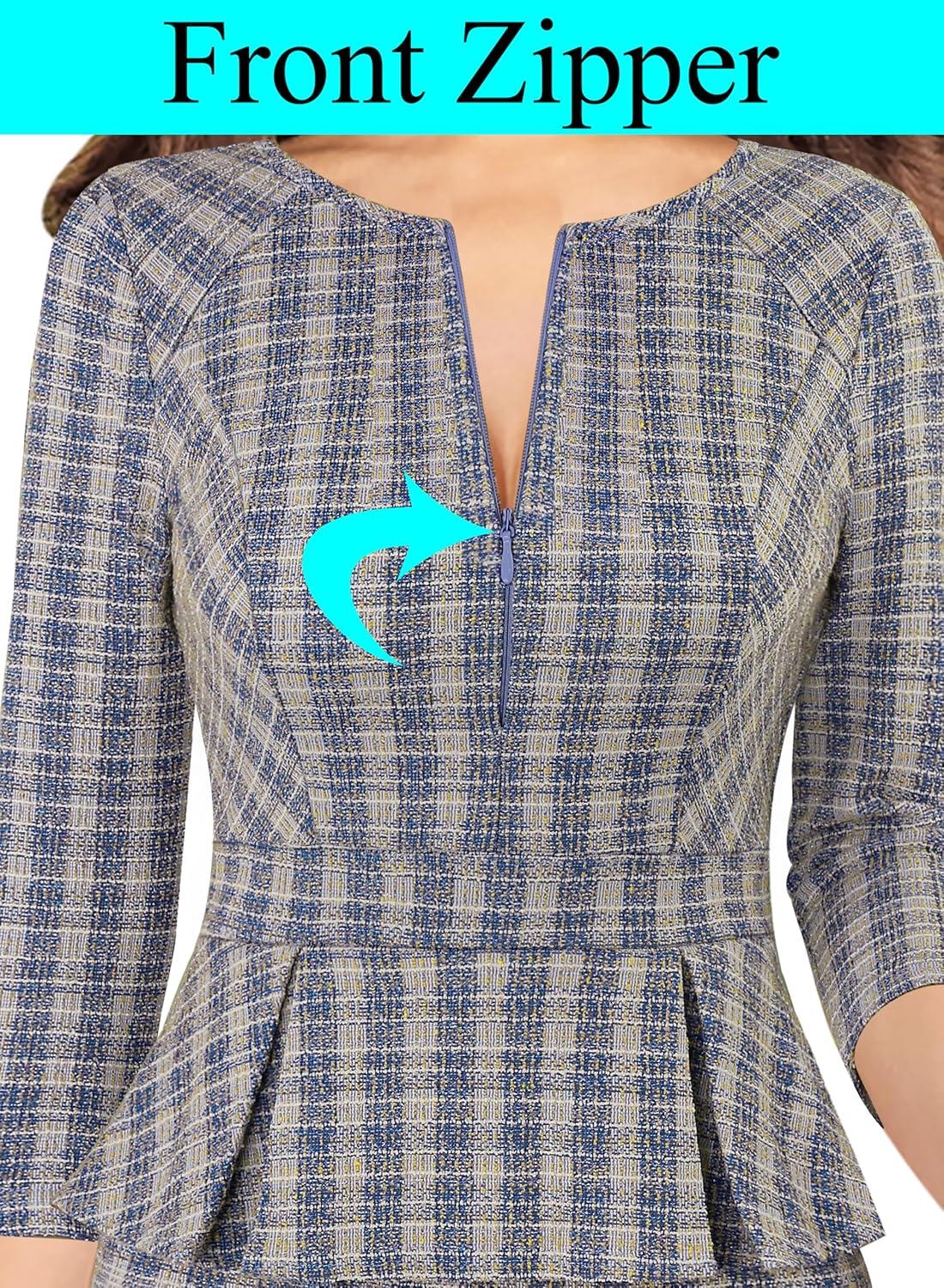 image:imageVFSHOW Womens Wear to Work Front Zipper V Neck Peplum Business Office Church Flattering Pencil Sheath DressBlue Tweed